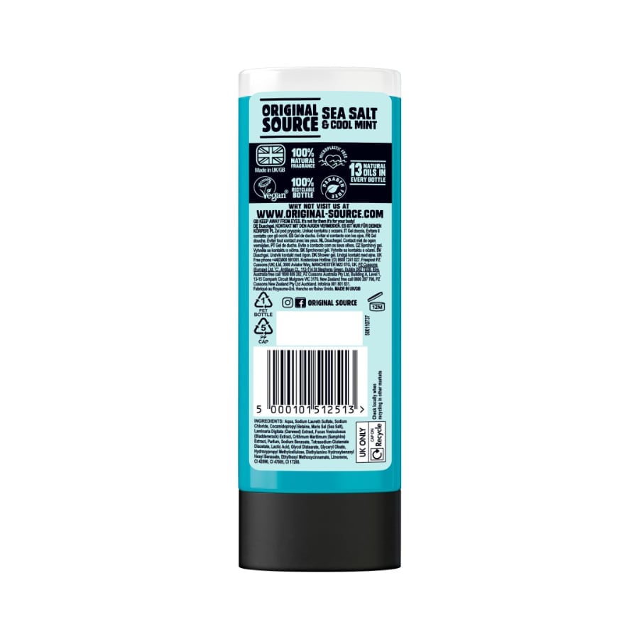 Aqua, Sodium Laureth Sulfate, Sodium Chloride, Cocamidopropyl Betaine, Maris Sal (Sea Salt), Laminaria Digitata (Oarweed) Extract, Fucus Vesiculosus (Bladderwrack) Extract, Crithmum Maritimum (Samphire) Extract, Parfum, Sodium Benzoate, Tetrasodium Glutamate Diacetate, Lactic Acid, Glycol Distearate, Glyceryl Oleate, Hydroxypropyl Methylcellulose, Diethylamino Hydroxybenzoyl Hexyl Benzoate, Ethylhexyl Methoxycinnamate, Limonene, CI 42090, CI 47005, CI 17200.